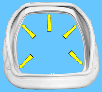 La posizione del simbolo di riferimento sulla guarnizione a soffietto.