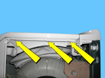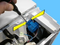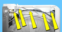 Rimuovere il cablaggio della serratura della porta dai pressacavi indicati dalle frecce.
