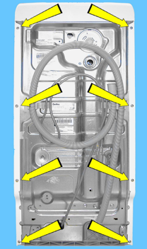 Rimuovendo i pannelli laterali è possibile accedere a tutte le varie parti della lavatrice.