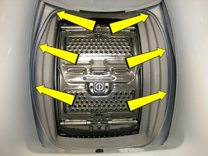 Sganciare le molle anteriori destra e sinistra dall'aspirazione.