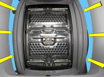 (La parte inferiore non è indicata dalle frecce perché è nascosta.)