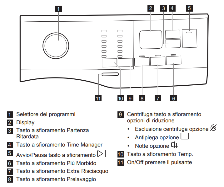 Di seguito alcune sezioni esemplificative del manuale di istruzioni della lavatrice: