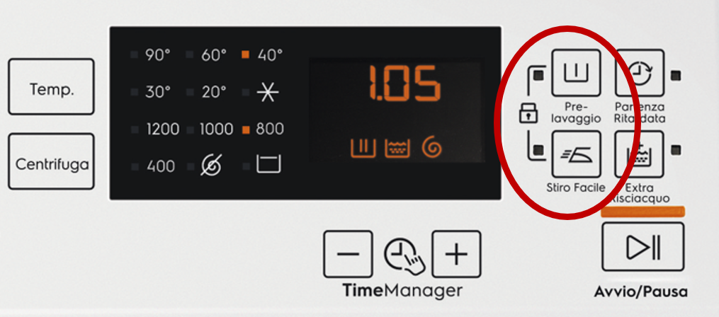Per attivare / disattivare questa opzione, tenere premuto il tasto "Centrifuga" fino all'accensione / spegnimento dell'indicatore del lucchetto.