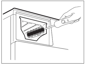 3. Verificare che tutti i residui di detersivo vengano rimossi dalla parte superiore e inferiore dell'alloggiamento del cassetto.